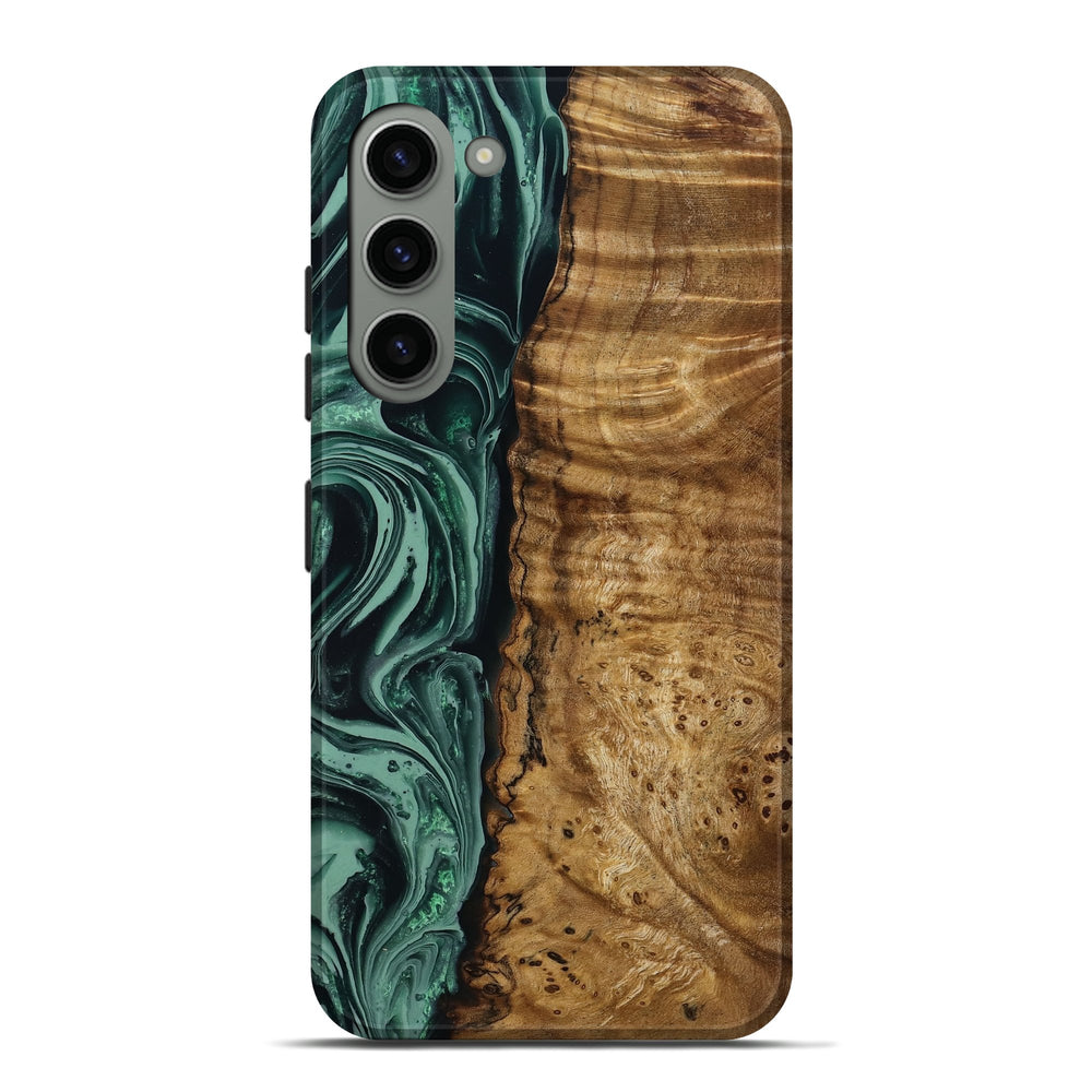 Our Live Edge cases are made from an amazing combination of stabilized wood burl and colored resin. Our stabilization process hardens the wood to protect against cracks and breaks. We do every step of the process at our shop in Northern Indiana. Perfectly fits the Galaxy S23 Plus.