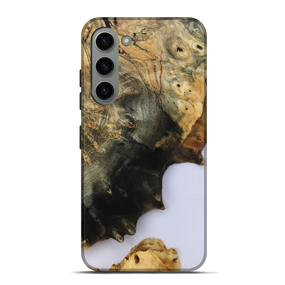 Our Live Edge cases are made from an amazing combination of stabilized wood burl and colored resin. Our stabilization process hardens the wood to protect against cracks and breaks. We do every step of the process at our shop in Northern Indiana. Perfectly fits the Galaxy S23 Plus.