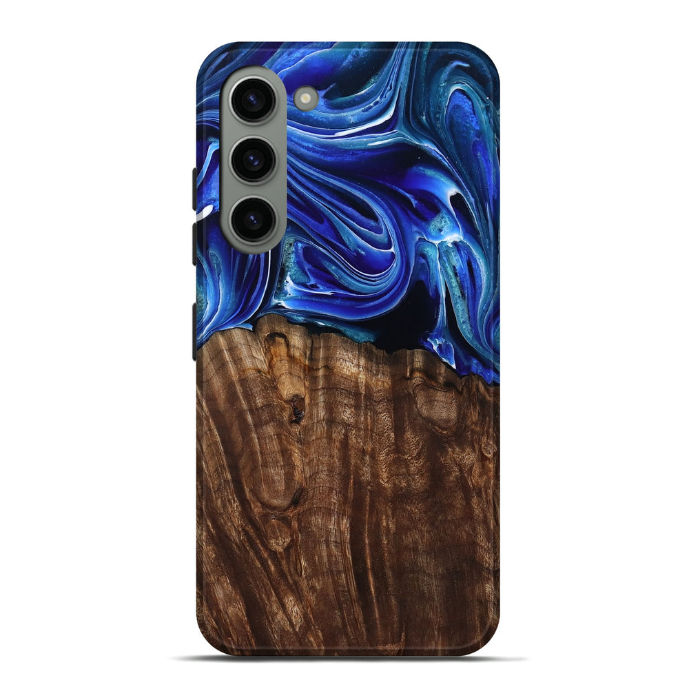 Our Live Edge cases are made from an amazing combination of stabilized wood burl and colored resin. Our stabilization process hardens the wood to protect against cracks and breaks. We do every step of the process at our shop in Northern Indiana. Perfectly fits the Galaxy S23 Plus.