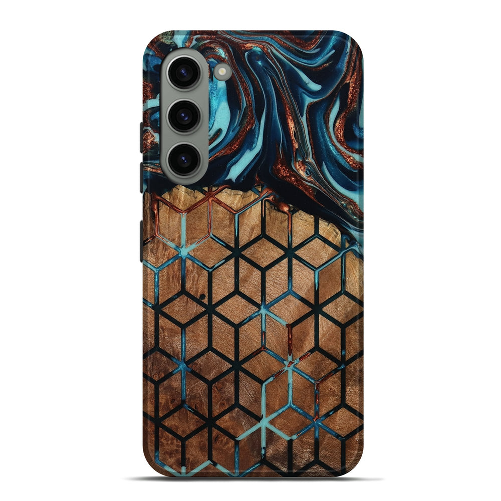 Our Live Edge cases are made from an amazing combination of stabilized wood burl and colored resin. Our stabilization process hardens the wood to protect against cracks and breaks. We do every step of the process at our shop in Northern Indiana. Perfectly fits the Galaxy S23 Plus.
