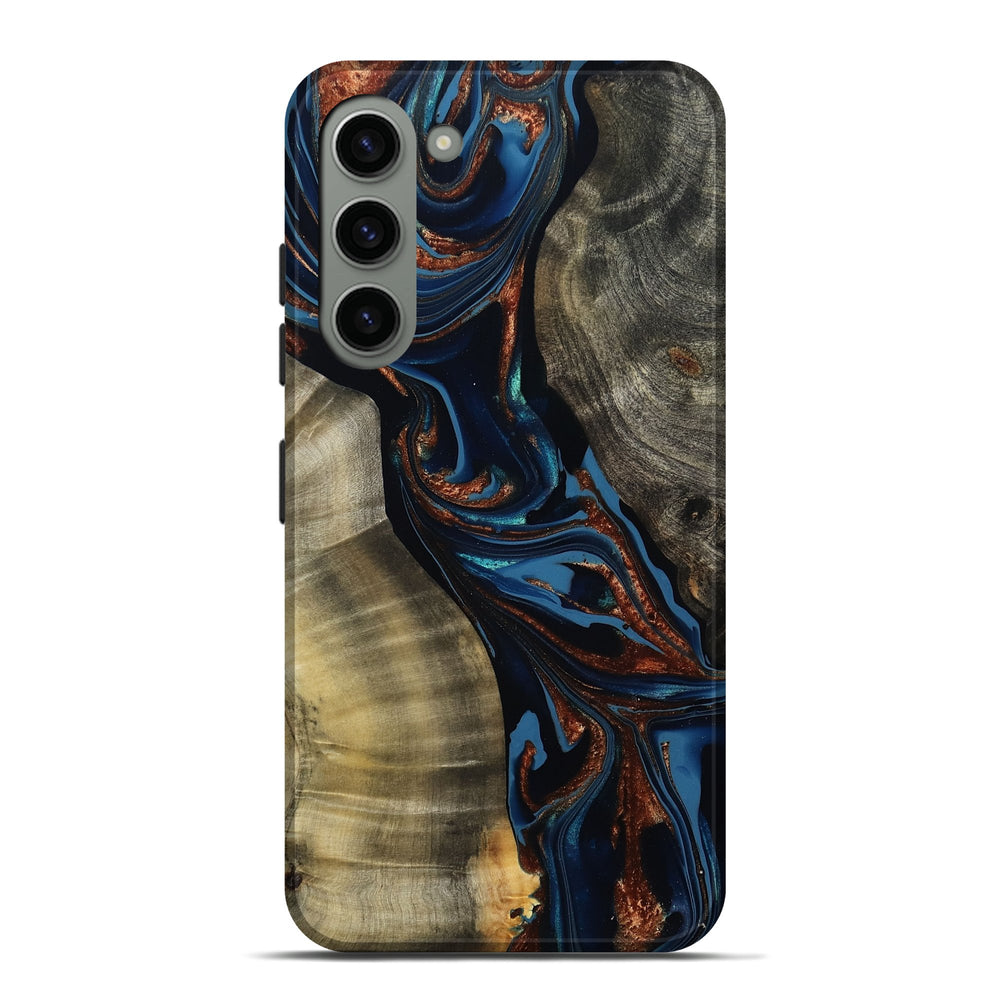 Our Live Edge cases are made from an amazing combination of stabilized wood burl and colored resin. Our stabilization process hardens the wood to protect against cracks and breaks. We do every step of the process at our shop in Northern Indiana. Perfectly fits the Galaxy S23 Plus.
