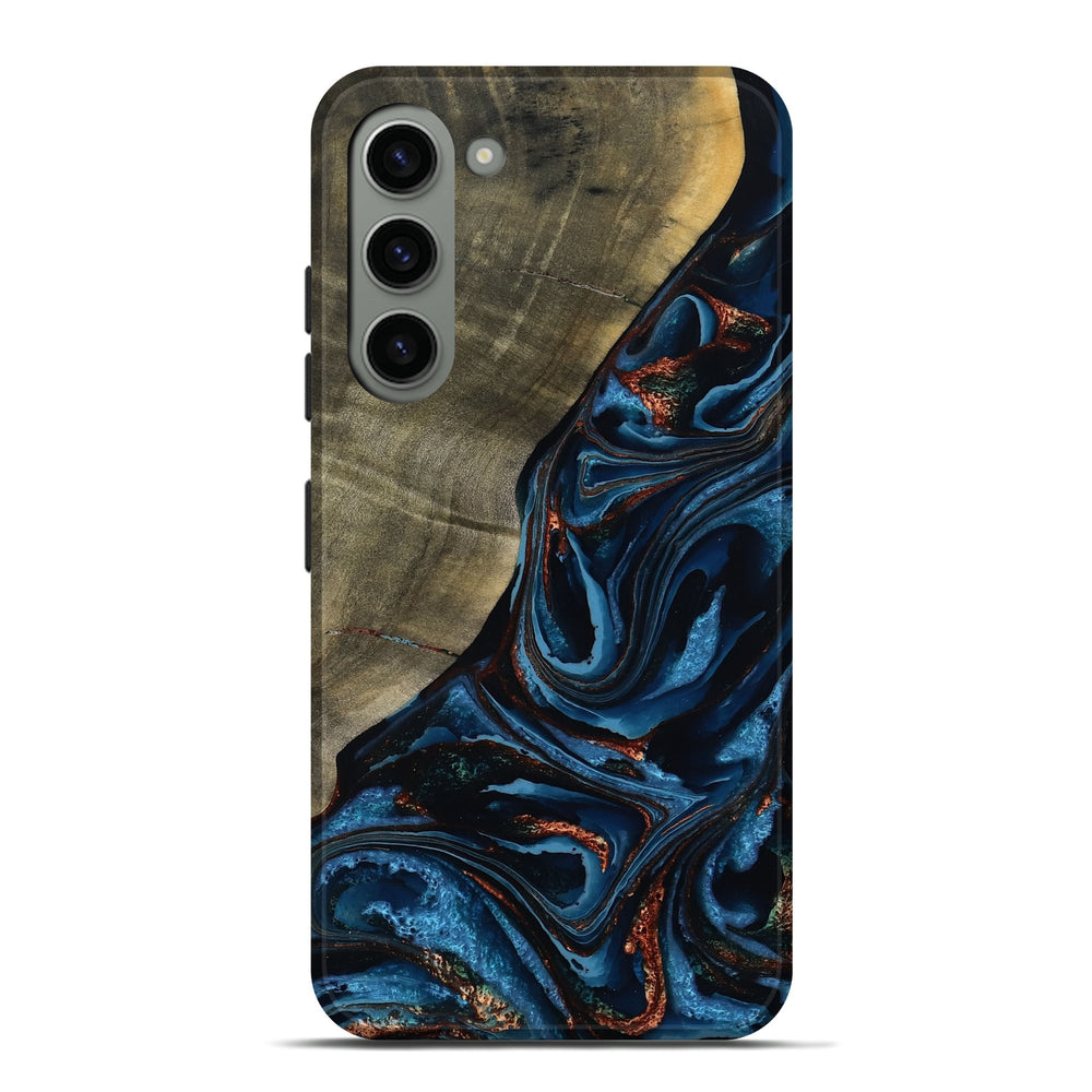 Our Live Edge cases are made from an amazing combination of stabilized wood burl and colored resin. Our stabilization process hardens the wood to protect against cracks and breaks. We do every step of the process at our shop in Northern Indiana. Perfectly fits the Galaxy S23 Plus.