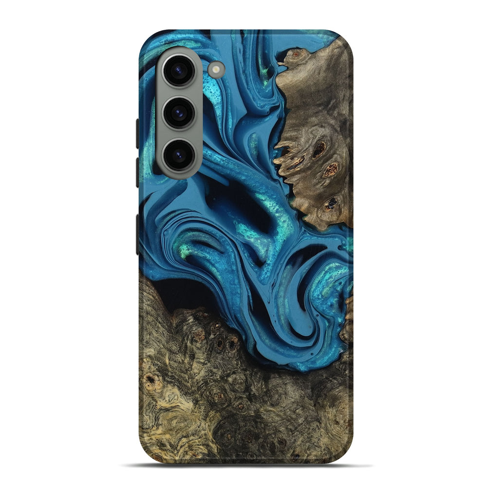 Our Live Edge cases are made from an amazing combination of stabilized wood burl and colored resin. Our stabilization process hardens the wood to protect against cracks and breaks. We do every step of the process at our shop in Northern Indiana. Perfectly fits the Galaxy S23 Plus.