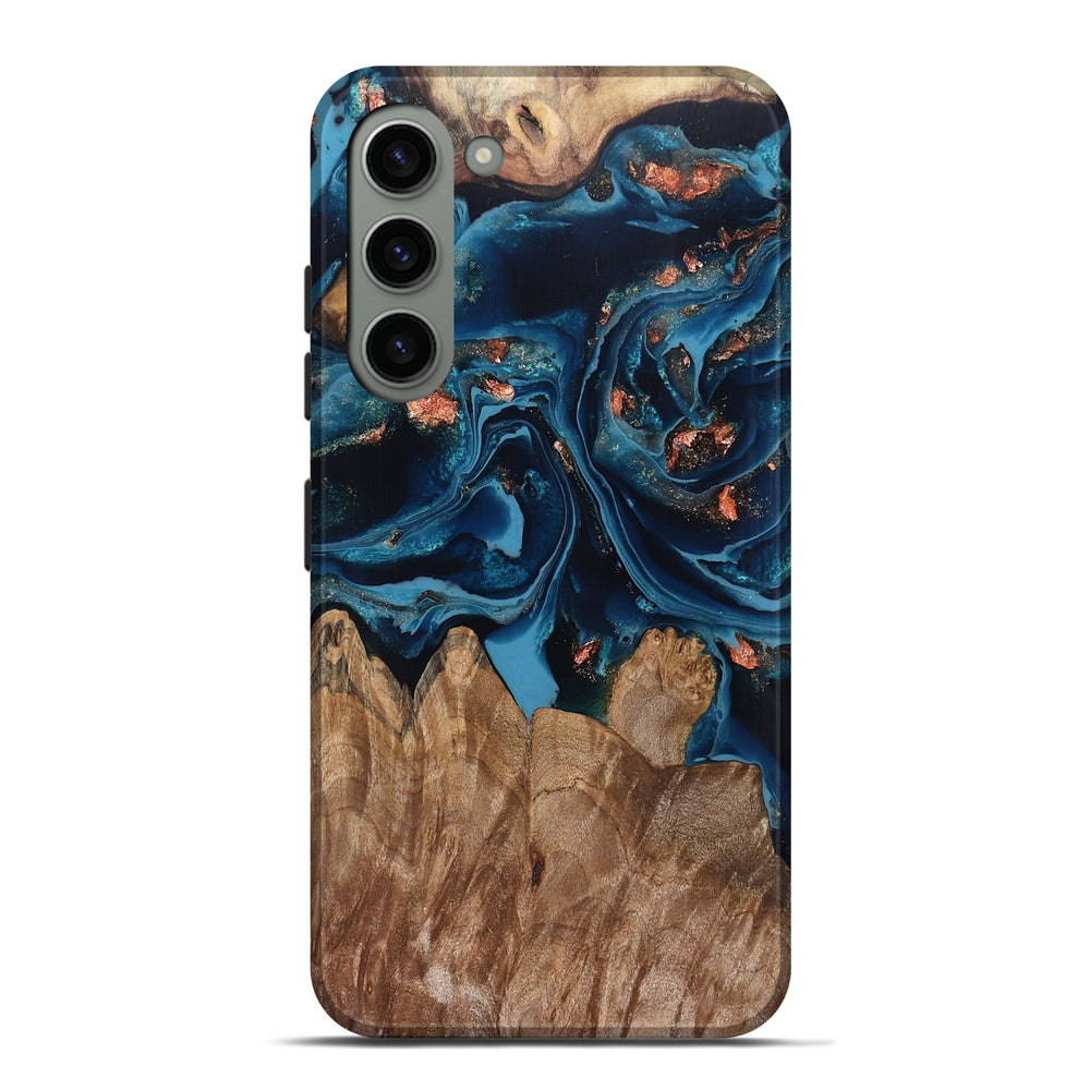 Our Live Edge cases are made from an amazing combination of stabilized wood burl and colored resin. Our stabilization process hardens the wood to protect against cracks and breaks. We do every step of the process at our shop in Northern Indiana. Perfectly fits the Galaxy S23 Plus.