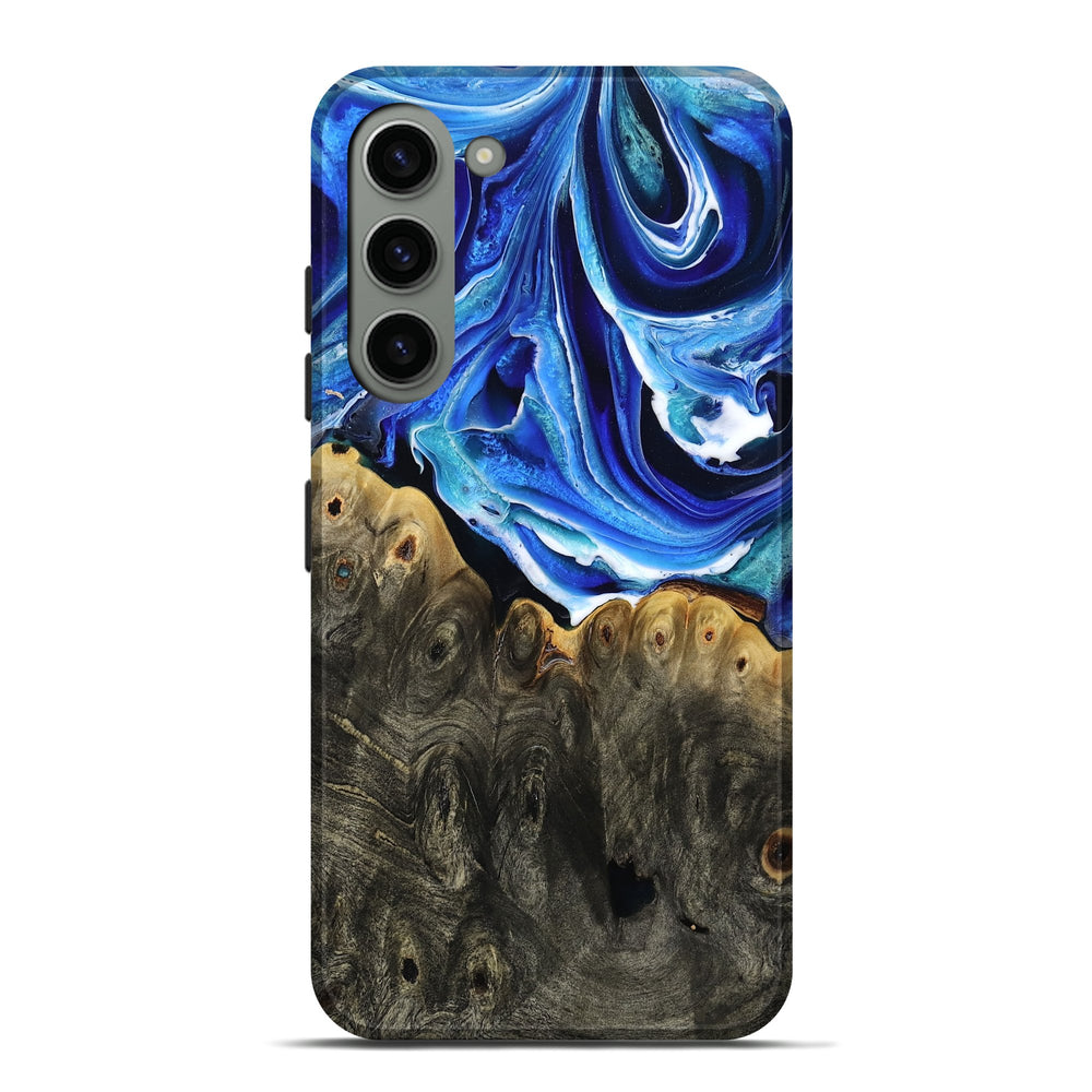 Our Live Edge cases are made from an amazing combination of stabilized wood burl and colored resin. Our stabilization process hardens the wood to protect against cracks and breaks. We do every step of the process at our shop in Northern Indiana. Perfectly fits the Galaxy S23 Plus.