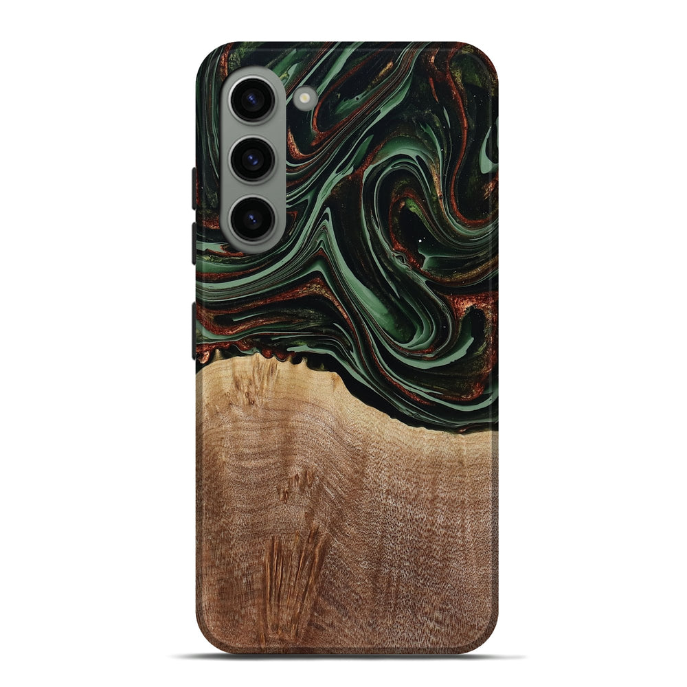 Our Live Edge cases are made from an amazing combination of stabilized wood burl and colored resin. Our stabilization process hardens the wood to protect against cracks and breaks. We do every step of the process at our shop in Northern Indiana. Perfectly fits the Galaxy S23 Plus.