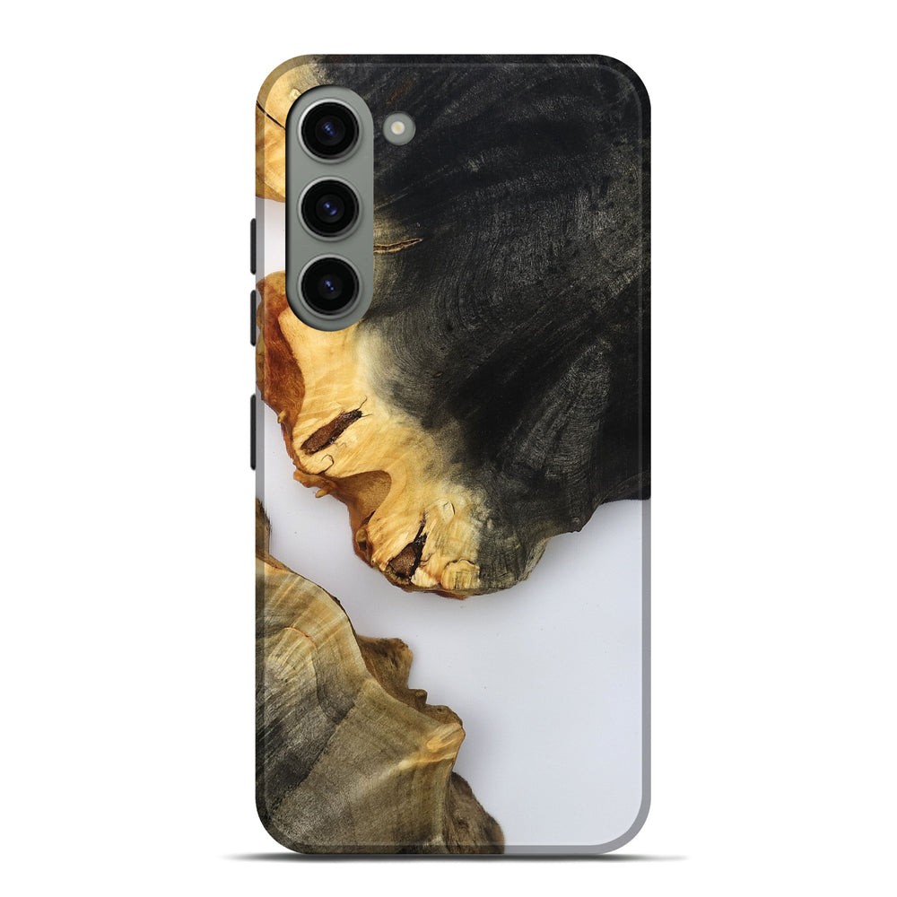 Our Live Edge cases are made from an amazing combination of stabilized wood burl and colored resin. Our stabilization process hardens the wood to protect against cracks and breaks. We do every step of the process at our shop in Northern Indiana. Perfectly fits the Galaxy S23 Plus.