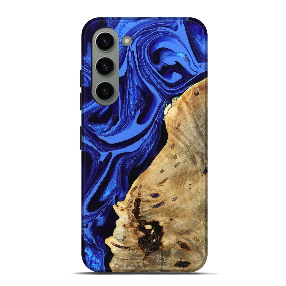 Our Live Edge cases are made from an amazing combination of stabilized wood burl and colored resin. Our stabilization process hardens the wood to protect against cracks and breaks. We do every step of the process at our shop in Northern Indiana. Perfectly fits the Galaxy S23 Plus.