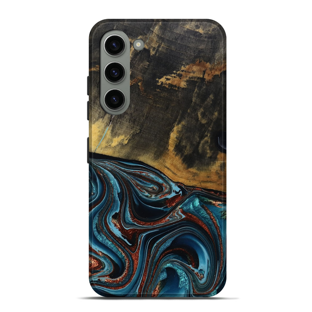 Our Live Edge cases are made from an amazing combination of stabilized wood burl and colored resin. Our stabilization process hardens the wood to protect against cracks and breaks. We do every step of the process at our shop in Northern Indiana. Perfectly fits the Galaxy S23 Plus.