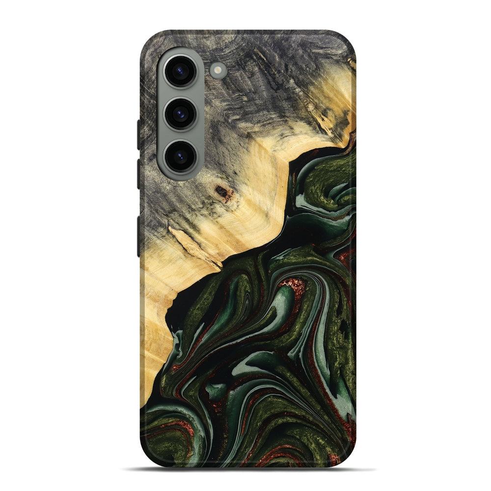 Our Live Edge cases are made from an amazing combination of stabilized wood burl and colored resin. Our stabilization process hardens the wood to protect against cracks and breaks. We do every step of the process at our shop in Northern Indiana. Perfectly fits the Galaxy S23 Plus.