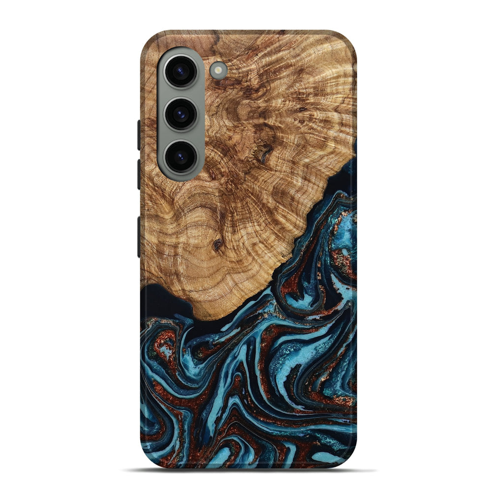 Our Live Edge cases are made from an amazing combination of stabilized wood burl and colored resin. Our stabilization process hardens the wood to protect against cracks and breaks. We do every step of the process at our shop in Northern Indiana. Perfectly fits the Galaxy S23 Plus.