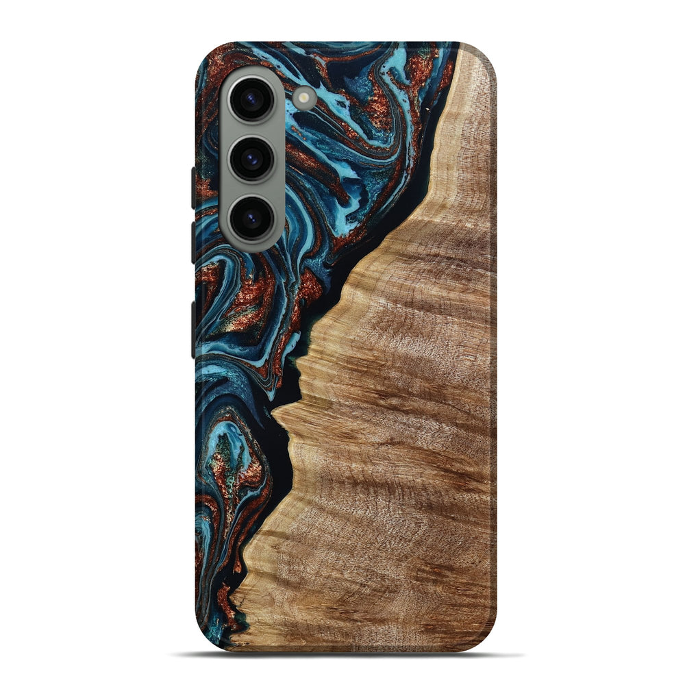 Our Live Edge cases are made from an amazing combination of stabilized wood burl and colored resin. Our stabilization process hardens the wood to protect against cracks and breaks. We do every step of the process at our shop in Northern Indiana. Perfectly fits the Galaxy S23 Plus.
