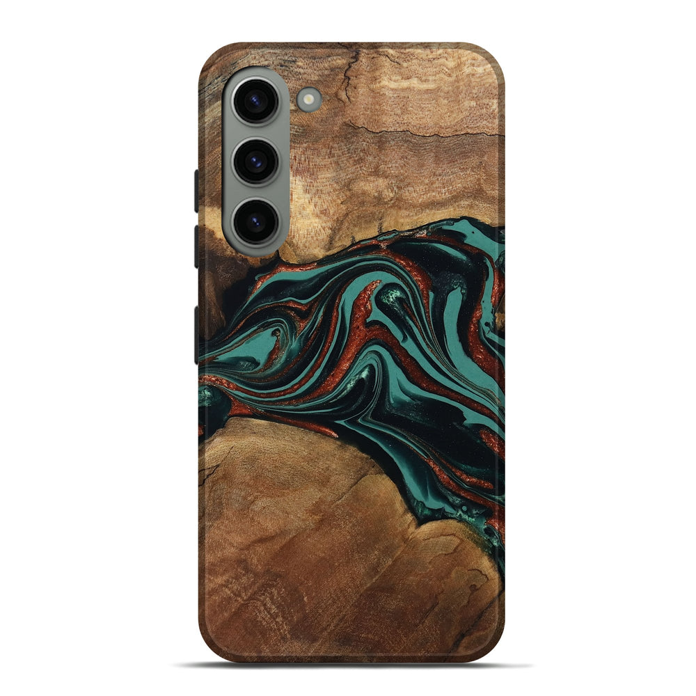 Our Live Edge cases are made from an amazing combination of stabilized wood burl and colored resin. Our stabilization process hardens the wood to protect against cracks and breaks. We do every step of the process at our shop in Northern Indiana. Perfectly fits the Galaxy S23 Plus.
