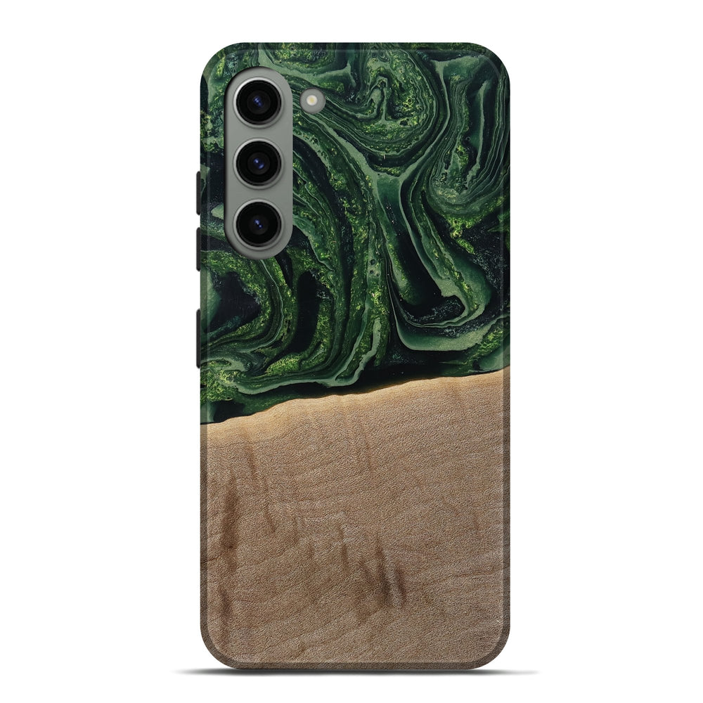 Our Live Edge cases are made from an amazing combination of stabilized wood burl and colored resin. Our stabilization process hardens the wood to protect against cracks and breaks. We do every step of the process at our shop in Northern Indiana. Perfectly fits the Galaxy S23 Plus.