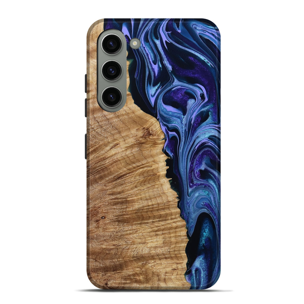 Our Live Edge cases are made from an amazing combination of stabilized wood burl and colored resin. Our stabilization process hardens the wood to protect against cracks and breaks. We do every step of the process at our shop in Northern Indiana. Perfectly fits the Galaxy S23 Plus.