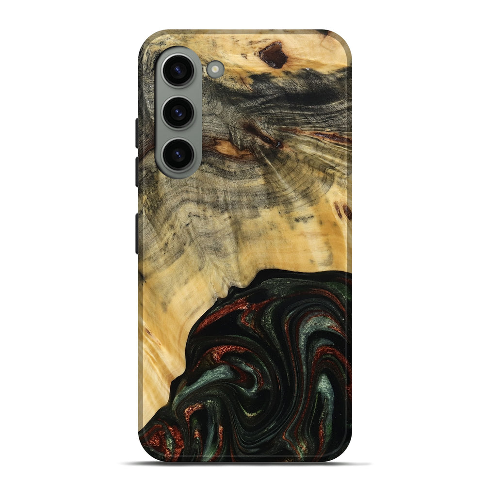 Our Live Edge cases are made from an amazing combination of stabilized wood burl and colored resin. Our stabilization process hardens the wood to protect against cracks and breaks. We do every step of the process at our shop in Northern Indiana. Perfectly fits the Galaxy S23 Plus.