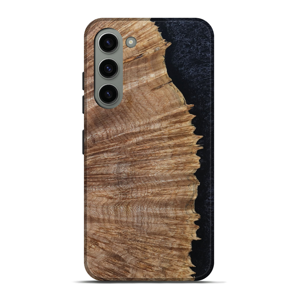 Our Live Edge cases are made from an amazing combination of stabilized wood burl and colored resin. Our stabilization process hardens the wood to protect against cracks and breaks. We do every step of the process at our shop in Northern Indiana. Perfectly fits the Galaxy S23 Plus.