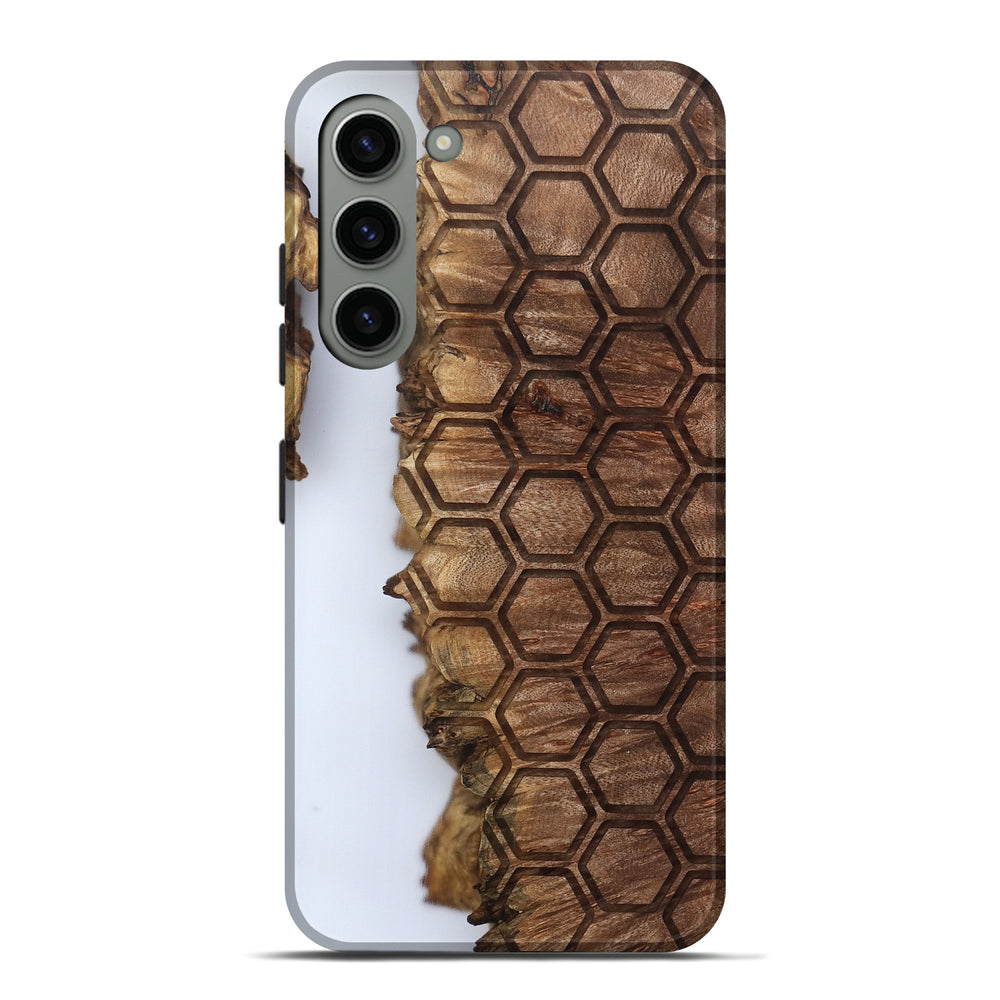Our Live Edge cases are made from an amazing combination of stabilized wood burl and colored resin. Our stabilization process hardens the wood to protect against cracks and breaks. We do every step of the process at our shop in Northern Indiana. Perfectly fits the Galaxy S23 Plus.
