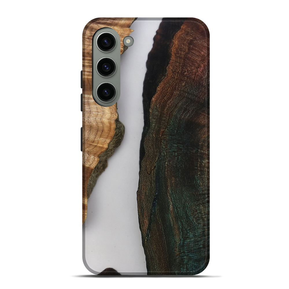 Our Live Edge cases are made from an amazing combination of stabilized wood burl and colored resin. Our stabilization process hardens the wood to protect against cracks and breaks. We do every step of the process at our shop in Northern Indiana. Perfectly fits the Galaxy S23 Plus.
