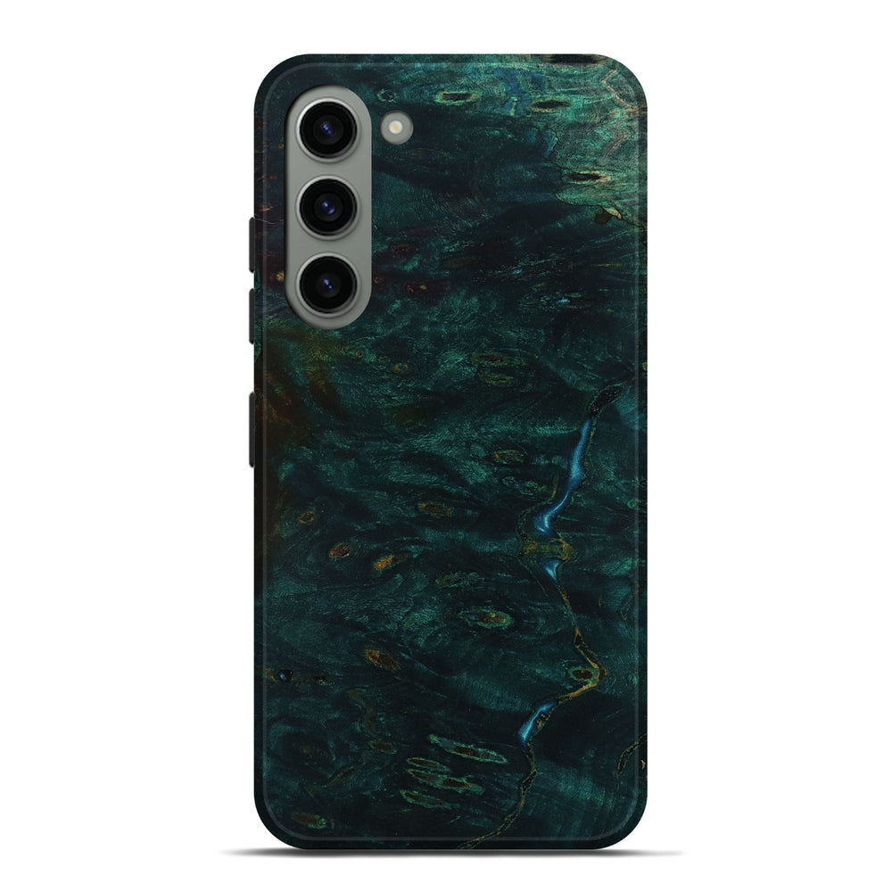 Our Live Edge cases are made from an amazing combination of stabilized wood burl and colored resin. Our stabilization process hardens the wood to protect against cracks and breaks. We do every step of the process at our shop in Northern Indiana. Perfectly fits the Galaxy S23 Plus.
