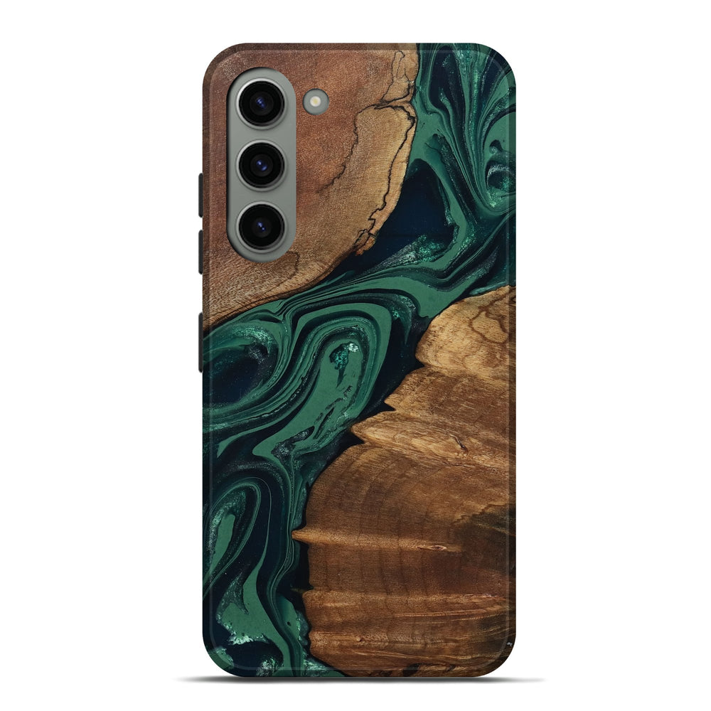 Our Live Edge cases are made from an amazing combination of stabilized wood burl and colored resin. Our stabilization process hardens the wood to protect against cracks and breaks. We do every step of the process at our shop in Northern Indiana. Perfectly fits the Galaxy S23 Plus.