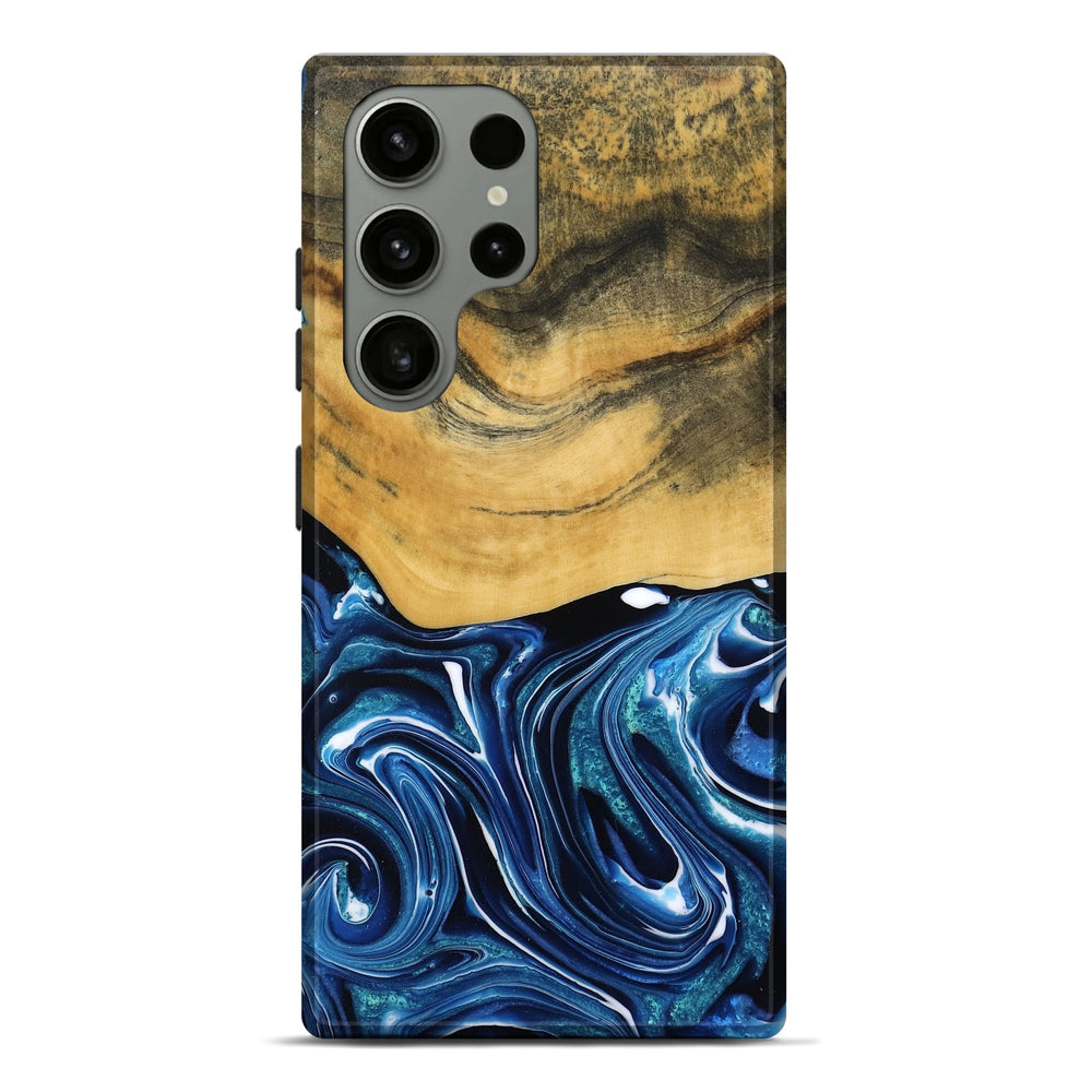 Our Live Edge cases are made from an amazing combination of stabilized wood burl and colored resin. Our stabilization process hardens the wood to protect against cracks and breaks. We do every step of the process at our shop in Northern Indiana. Perfectly fits the Galaxy S23 Ultra.