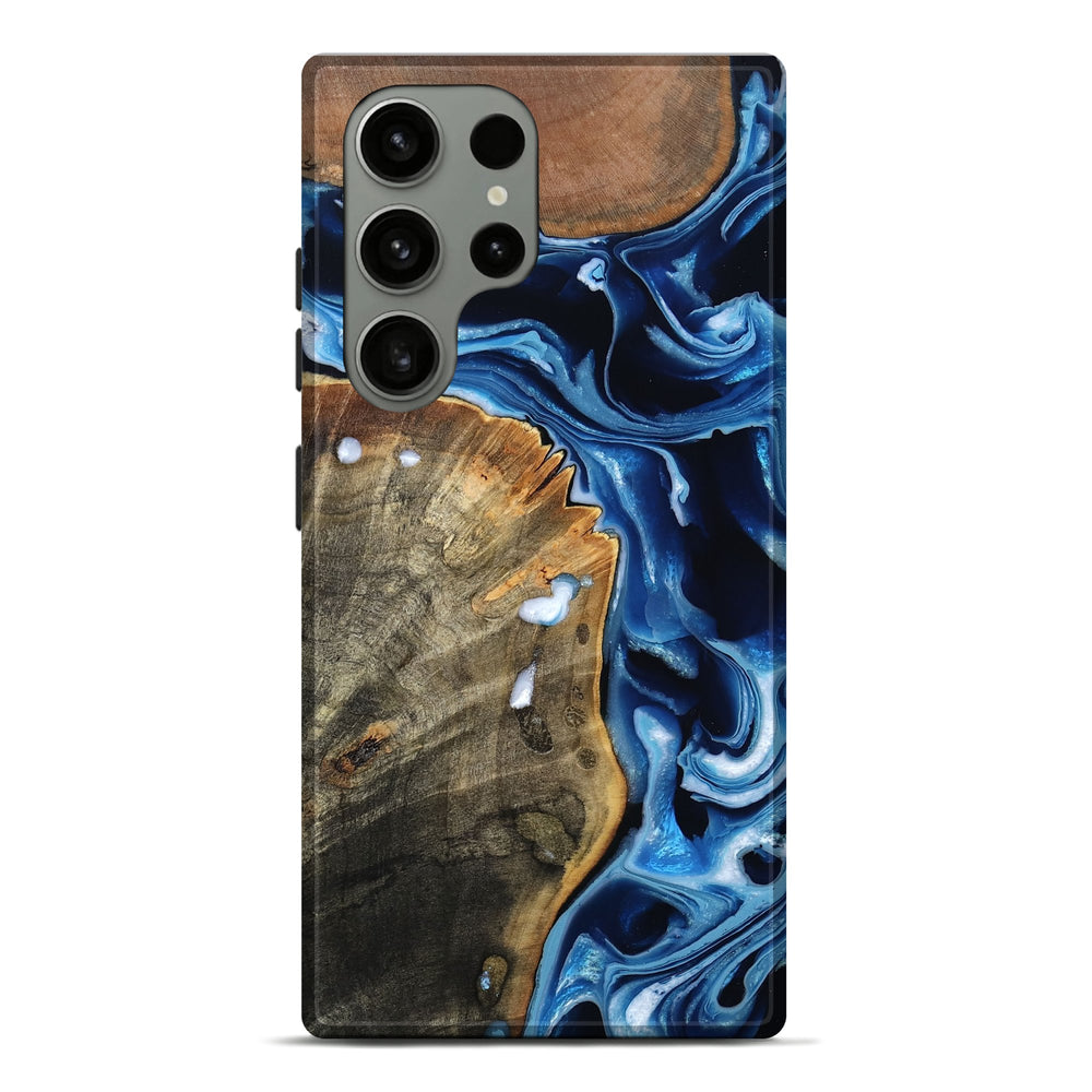 Our Live Edge cases are made from an amazing combination of stabilized wood burl and colored resin. Our stabilization process hardens the wood to protect against cracks and breaks. We do every step of the process at our shop in Northern Indiana. Perfectly fits the Galaxy S23 Ultra.