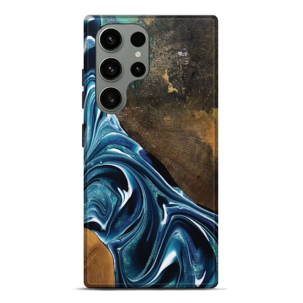 Our Live Edge cases are made from an amazing combination of stabilized wood burl and colored resin. Our stabilization process hardens the wood to protect against cracks and breaks. We do every step of the process at our shop in Northern Indiana. Perfectly fits the Galaxy S23 Ultra.
