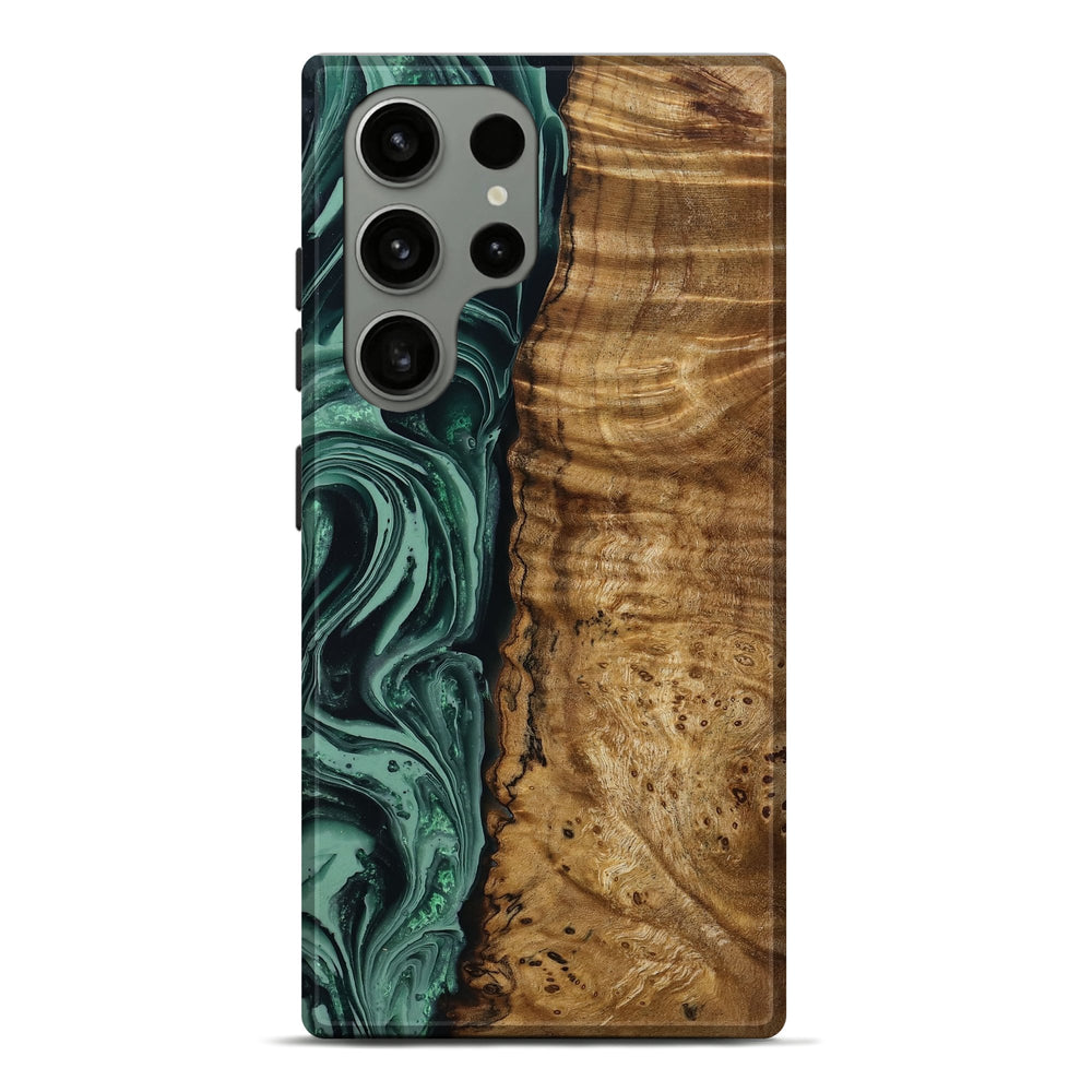 Our Live Edge cases are made from an amazing combination of stabilized wood burl and colored resin. Our stabilization process hardens the wood to protect against cracks and breaks. We do every step of the process at our shop in Northern Indiana. Perfectly fits the Galaxy S23 Ultra.