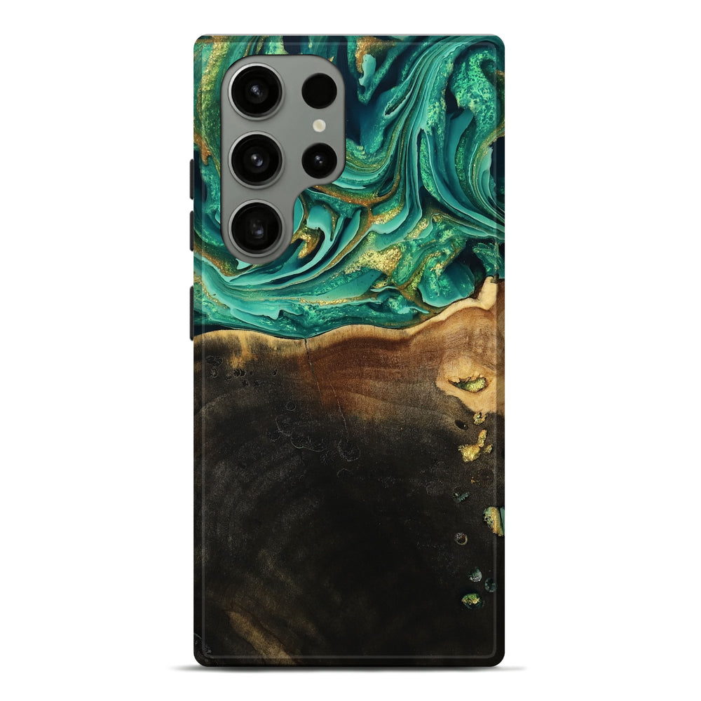 Our Live Edge cases are made from an amazing combination of stabilized wood burl and colored resin. Our stabilization process hardens the wood to protect against cracks and breaks. We do every step of the process at our shop in Northern Indiana. Perfectly fits the Galaxy S23 Ultra.