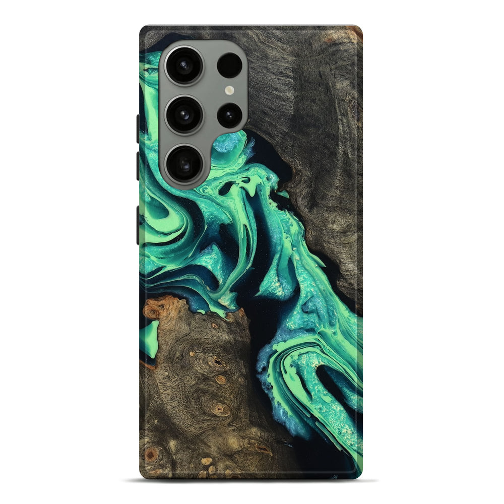 Our Live Edge cases are made from an amazing combination of stabilized wood burl and colored resin. Our stabilization process hardens the wood to protect against cracks and breaks. We do every step of the process at our shop in Northern Indiana. Perfectly fits the Galaxy S23 Ultra.