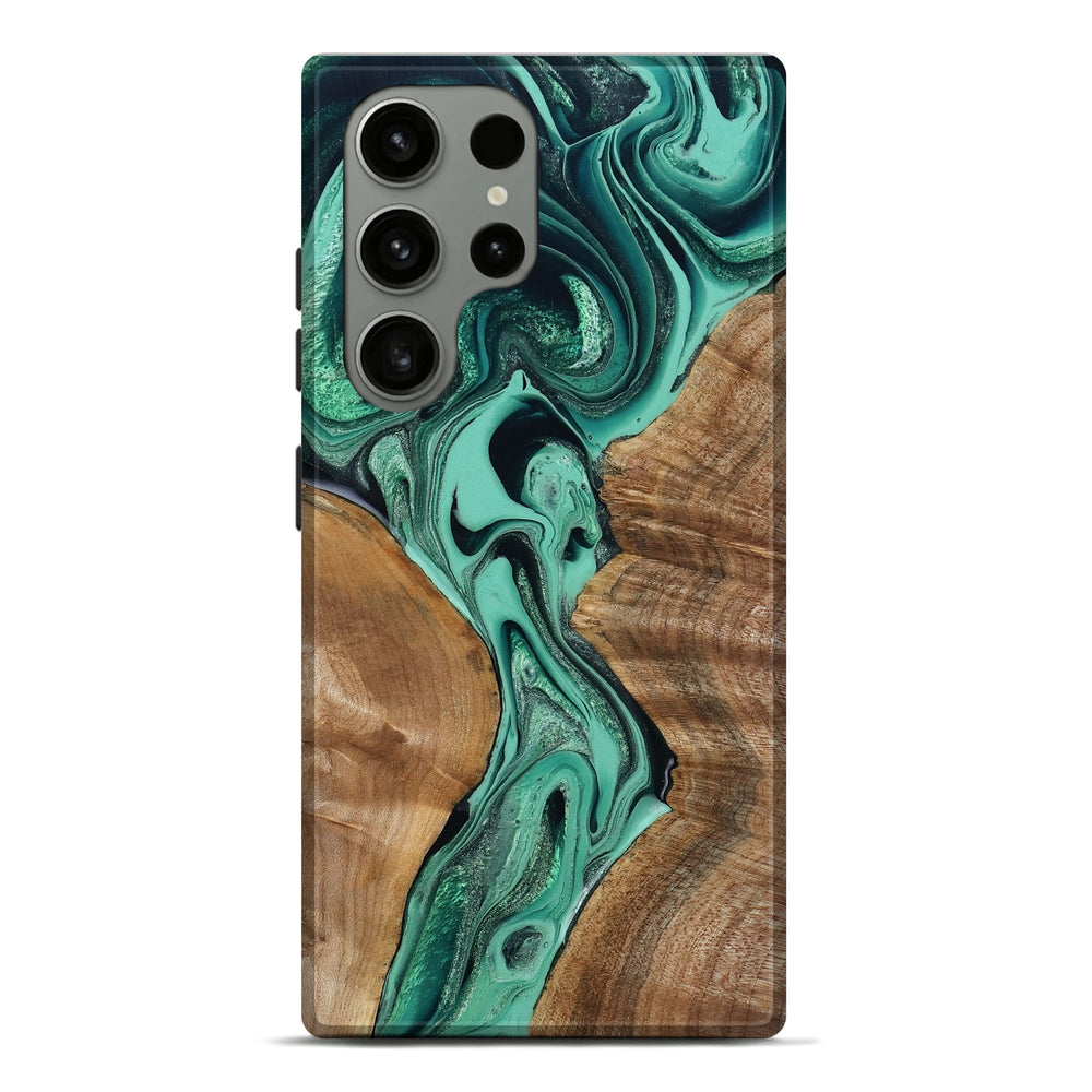 Our Live Edge cases are made from an amazing combination of stabilized wood burl and colored resin. Our stabilization process hardens the wood to protect against cracks and breaks. We do every step of the process at our shop in Northern Indiana. Perfectly fits the Galaxy S23 Ultra.
