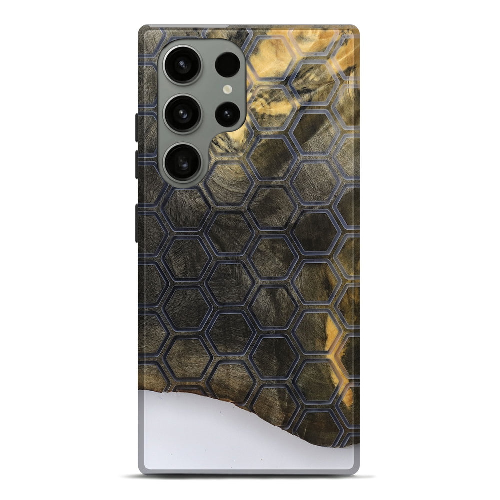 Our Live Edge cases are made from an amazing combination of stabilized wood burl and colored resin. Our stabilization process hardens the wood to protect against cracks and breaks. We do every step of the process at our shop in Northern Indiana. Perfectly fits the Galaxy S23 Ultra.