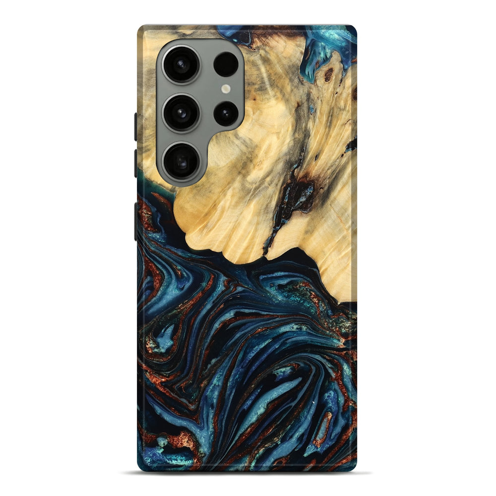 Our Live Edge cases are made from an amazing combination of stabilized wood burl and colored resin. Our stabilization process hardens the wood to protect against cracks and breaks. We do every step of the process at our shop in Northern Indiana. Perfectly fits the Galaxy S23 Ultra.