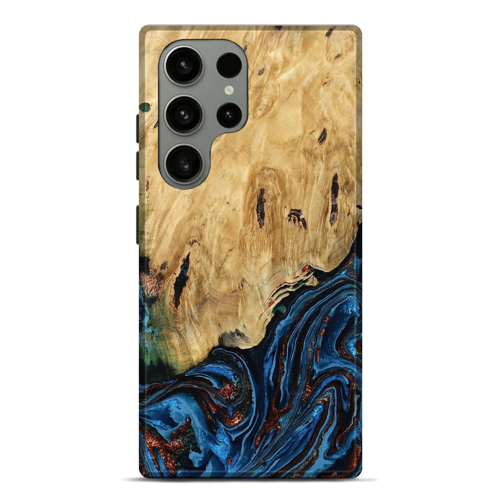 Our Live Edge cases are made from an amazing combination of stabilized wood burl and colored resin. Our stabilization process hardens the wood to protect against cracks and breaks. We do every step of the process at our shop in Northern Indiana. Perfectly fits the Galaxy S23 Ultra.