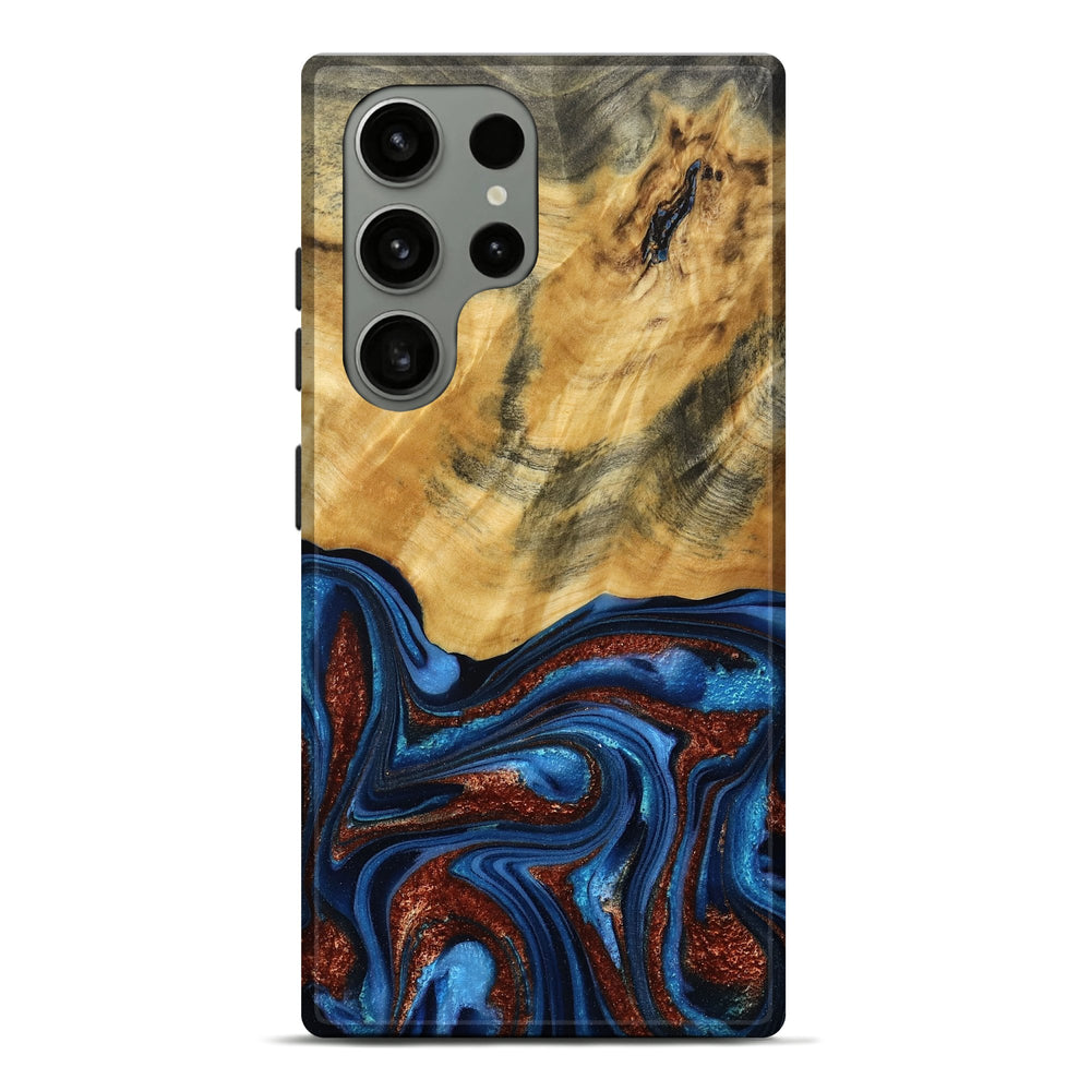 Our Live Edge cases are made from an amazing combination of stabilized wood burl and colored resin. Our stabilization process hardens the wood to protect against cracks and breaks. We do every step of the process at our shop in Northern Indiana. Perfectly fits the Galaxy S23 Ultra.