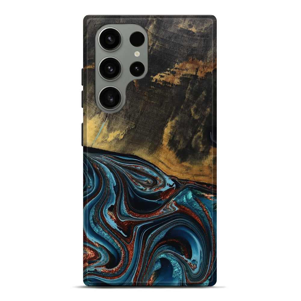 Our Live Edge cases are made from an amazing combination of stabilized wood burl and colored resin. Our stabilization process hardens the wood to protect against cracks and breaks. We do every step of the process at our shop in Northern Indiana. Perfectly fits the Galaxy S23 Ultra.