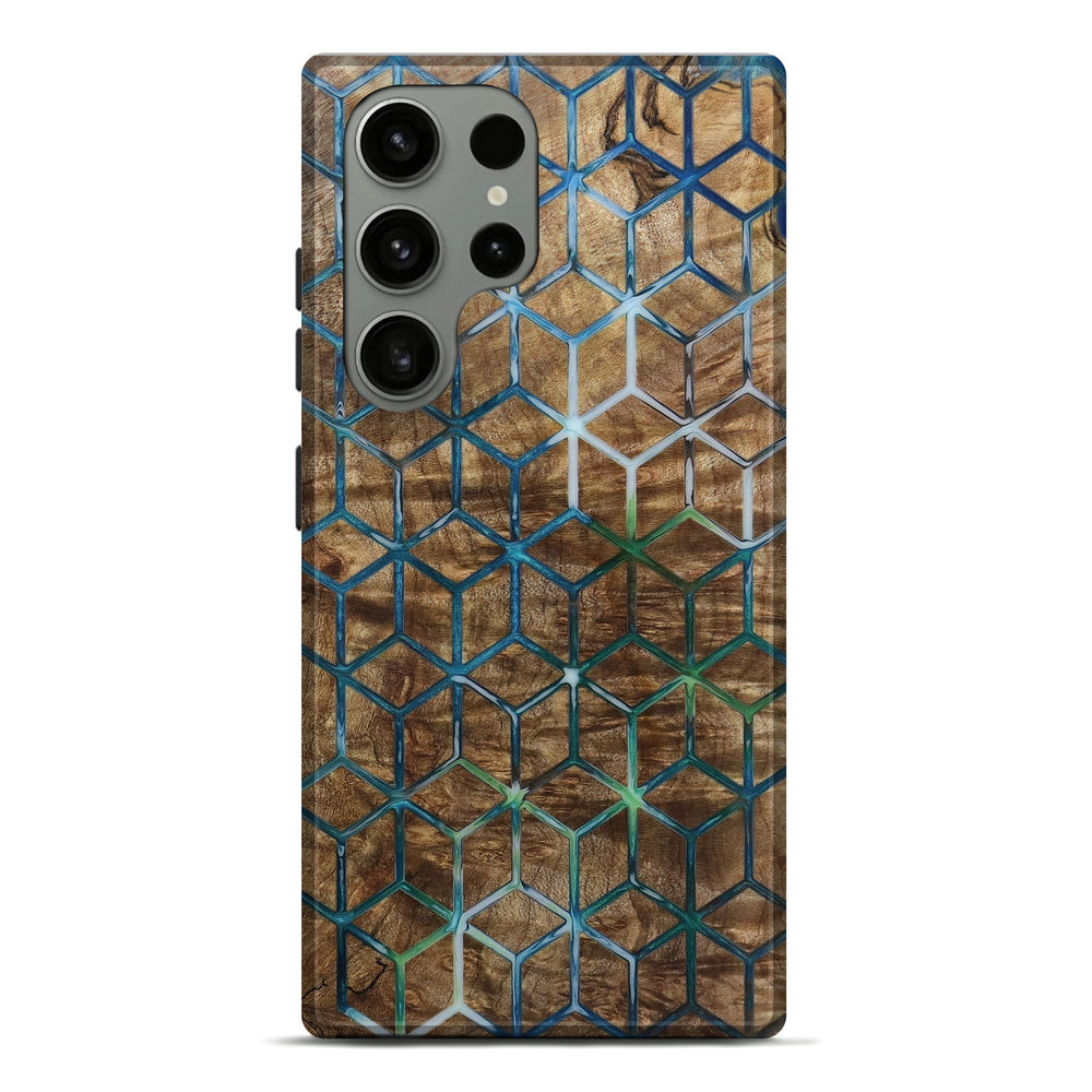 Our Live Edge cases are made from an amazing combination of stabilized wood burl and colored resin. Our stabilization process hardens the wood to protect against cracks and breaks. We do every step of the process at our shop in Northern Indiana. Perfectly fits the Galaxy S23 Ultra.