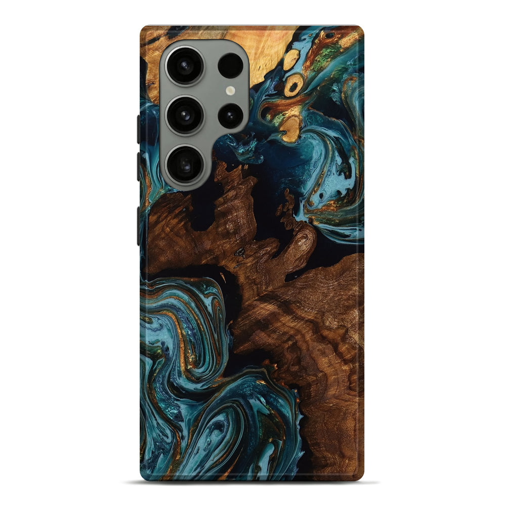 Our Live Edge cases are made from an amazing combination of stabilized wood burl and colored resin. Our stabilization process hardens the wood to protect against cracks and breaks. We do every step of the process at our shop in Northern Indiana. Perfectly fits the Galaxy S23 Ultra.