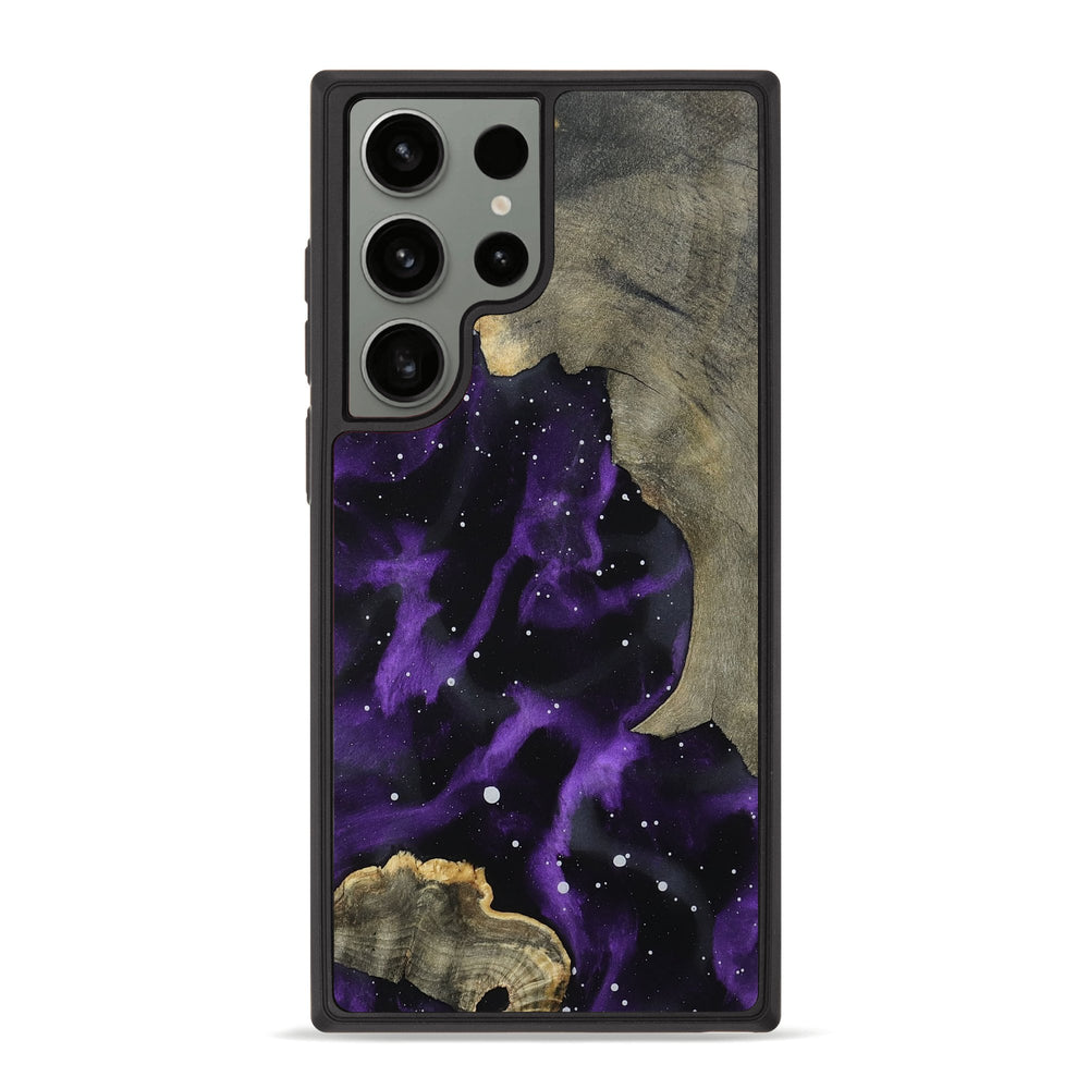 Daija has a beautiful mix of rich Buckeye wood grain that flows seamlessly into deep purple hues. The design features a cosmic pattern, creating a sense of deep space and intrigue.