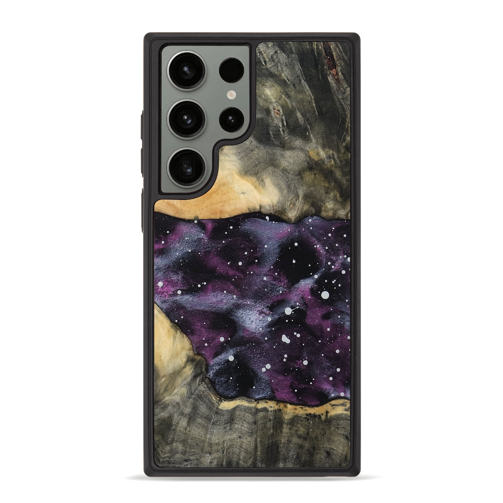 Haleigh has a rich, natural wood grain with warm tones that complement its unique design. It features a beautiful galaxy pattern of deep purples and subtle white specks, creating a striking contrast.