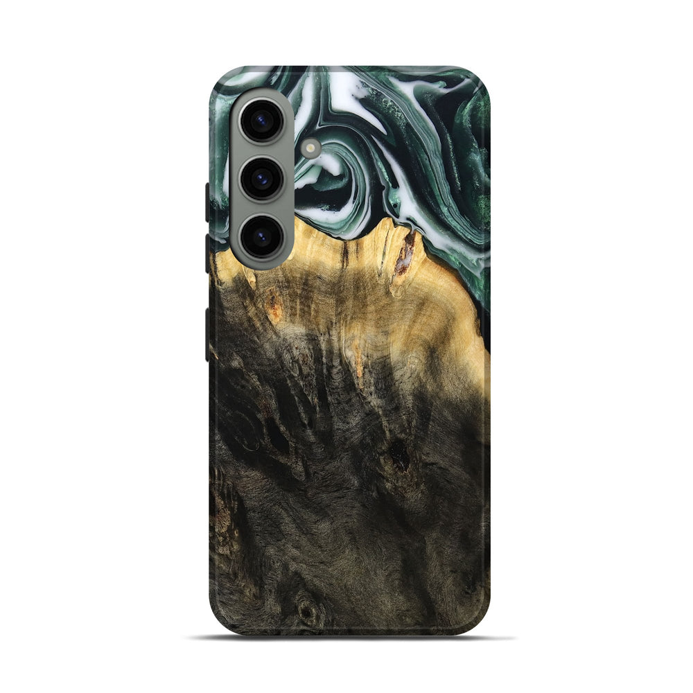 Our Live Edge cases are made from an amazing combination of stabilized wood burl and colored resin. Our stabilization process hardens the wood to protect against cracks and breaks. We do every step of the process at our shop in Northern Indiana. Perfectly fits the Galaxy S24.