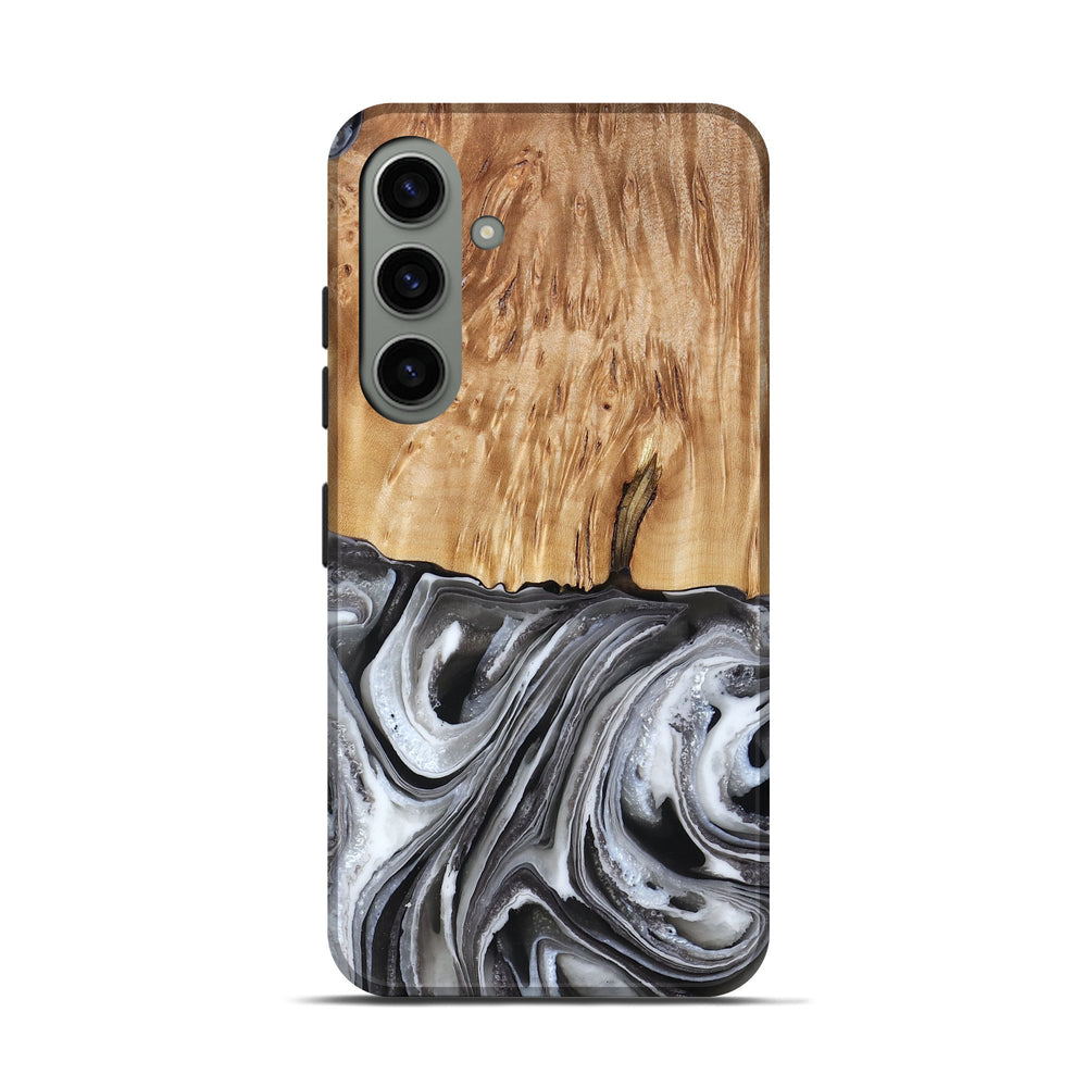 Our Live Edge cases are made from an amazing combination of stabilized wood burl and colored resin. Our stabilization process hardens the wood to protect against cracks and breaks. We do every step of the process at our shop in Northern Indiana. Perfectly fits the Galaxy S24.