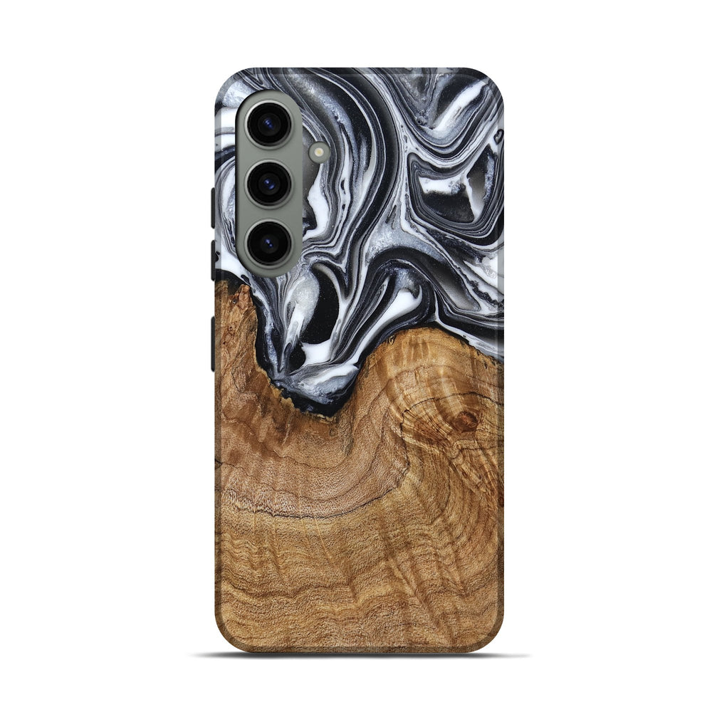 Our Live Edge cases are made from an amazing combination of stabilized wood burl and colored resin. Our stabilization process hardens the wood to protect against cracks and breaks. We do every step of the process at our shop in Northern Indiana. Perfectly fits the Galaxy S24.