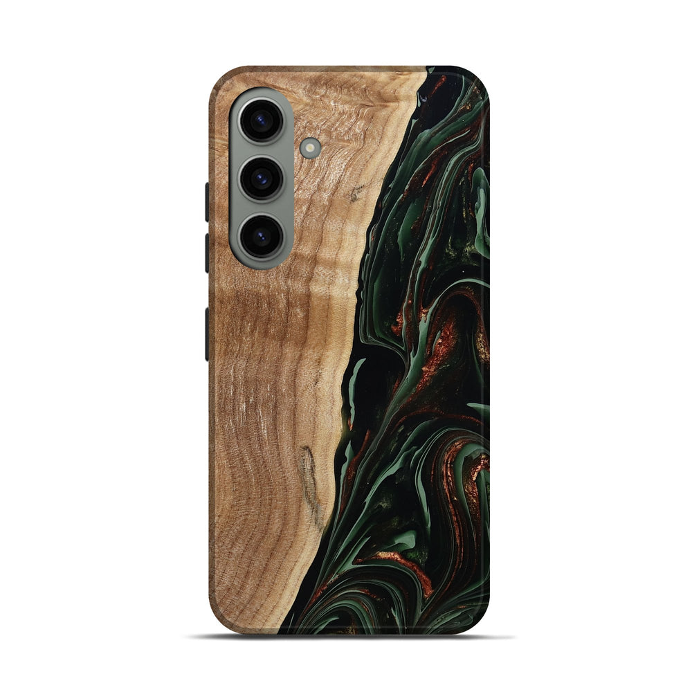 Our Live Edge cases are made from an amazing combination of stabilized wood burl and colored resin. Our stabilization process hardens the wood to protect against cracks and breaks. We do every step of the process at our shop in Northern Indiana. Perfectly fits the Galaxy S24.