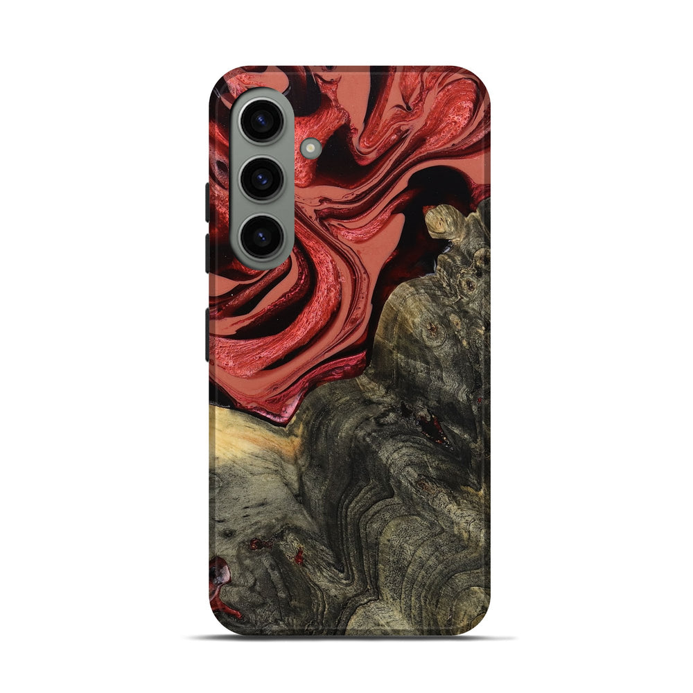 Our Live Edge cases are made from an amazing combination of stabilized wood burl and colored resin. Our stabilization process hardens the wood to protect against cracks and breaks. We do every step of the process at our shop in Northern Indiana. Perfectly fits the Galaxy S24.