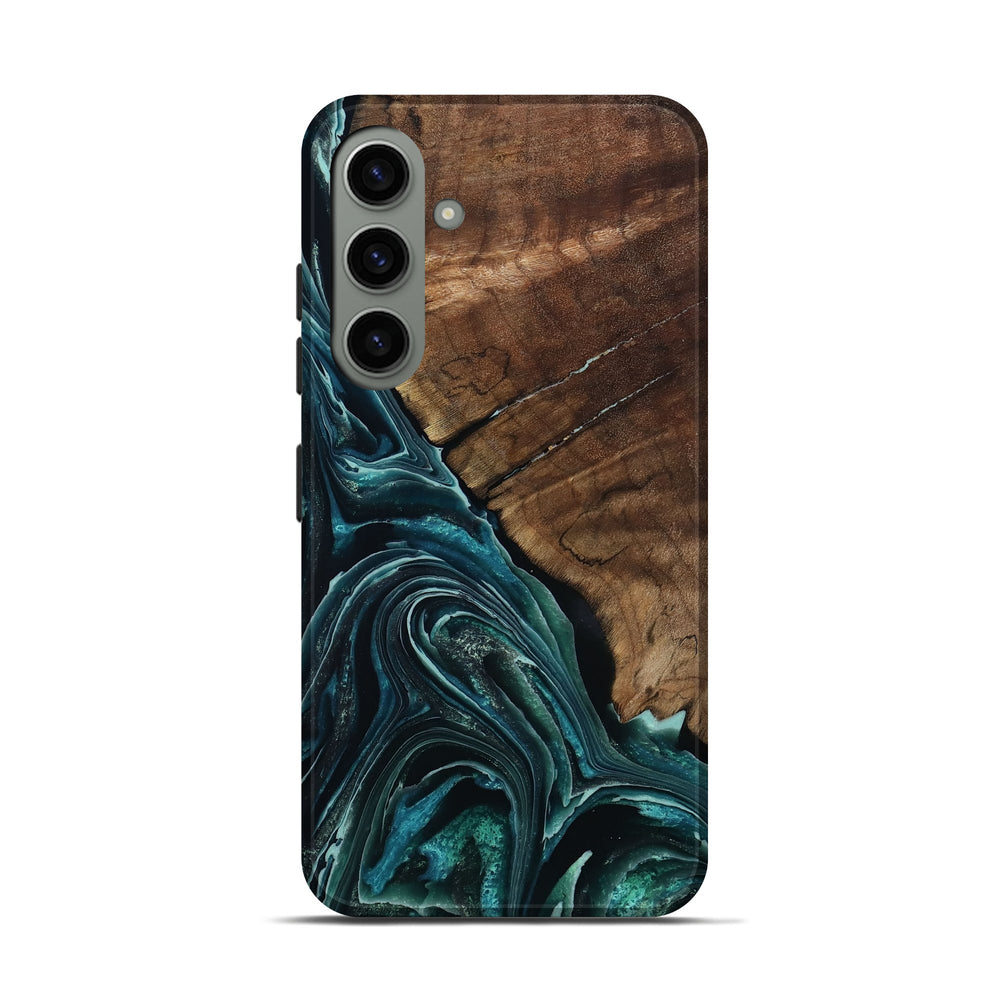 Our Live Edge cases are made from an amazing combination of stabilized wood burl and colored resin. Our stabilization process hardens the wood to protect against cracks and breaks. We do every step of the process at our shop in Northern Indiana. Perfectly fits the Galaxy S24.