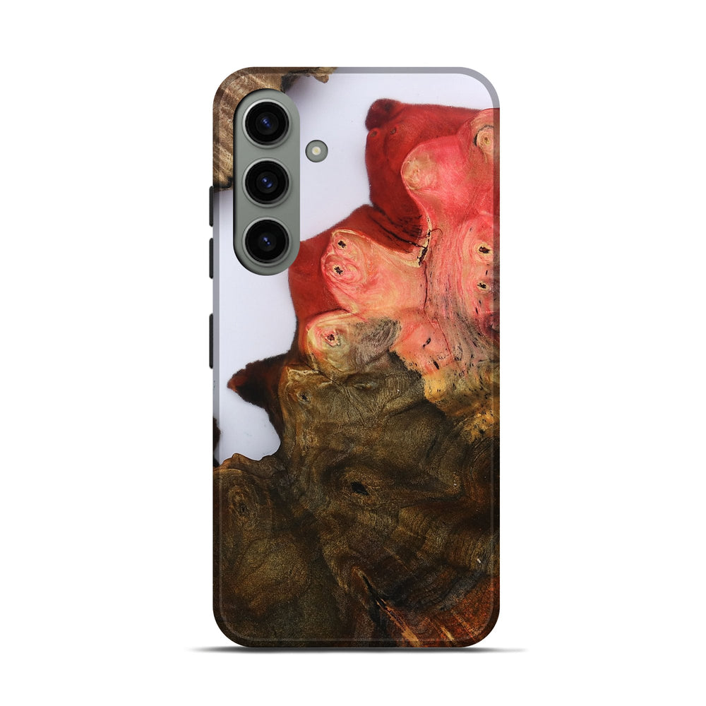 Our Live Edge cases are made from an amazing combination of stabilized wood burl and colored resin. Our stabilization process hardens the wood to protect against cracks and breaks. We do every step of the process at our shop in Northern Indiana. Perfectly fits the Galaxy S24.
