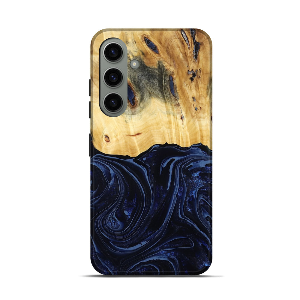 Our Live Edge cases are made from an amazing combination of stabilized wood burl and colored resin. Our stabilization process hardens the wood to protect against cracks and breaks. We do every step of the process at our shop in Northern Indiana. Perfectly fits the Galaxy S24.