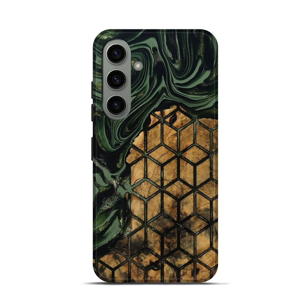 Our Live Edge cases are made from an amazing combination of stabilized wood burl and colored resin. Our stabilization process hardens the wood to protect against cracks and breaks. We do every step of the process at our shop in Northern Indiana. Perfectly fits the Galaxy S24.